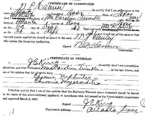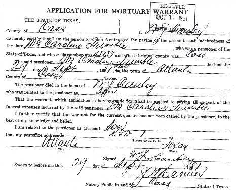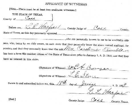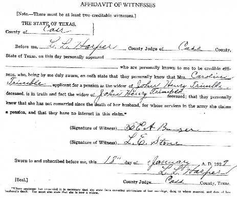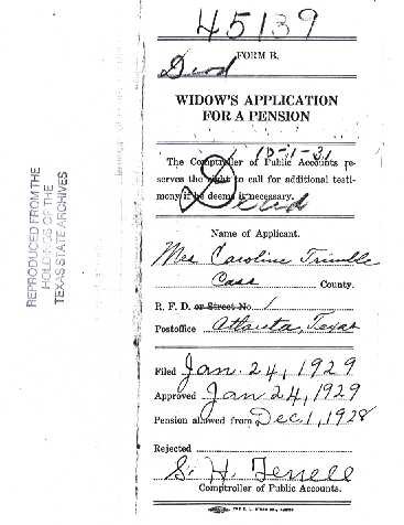 Caroline Trimble's Confederate Widow's Pension Application based on Civil War service of John Henry Trimble.