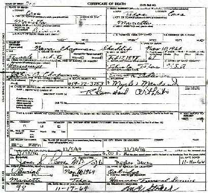 Right - Nona G. Chapman's Death Certificate. Click on either to see a larger version!!! |